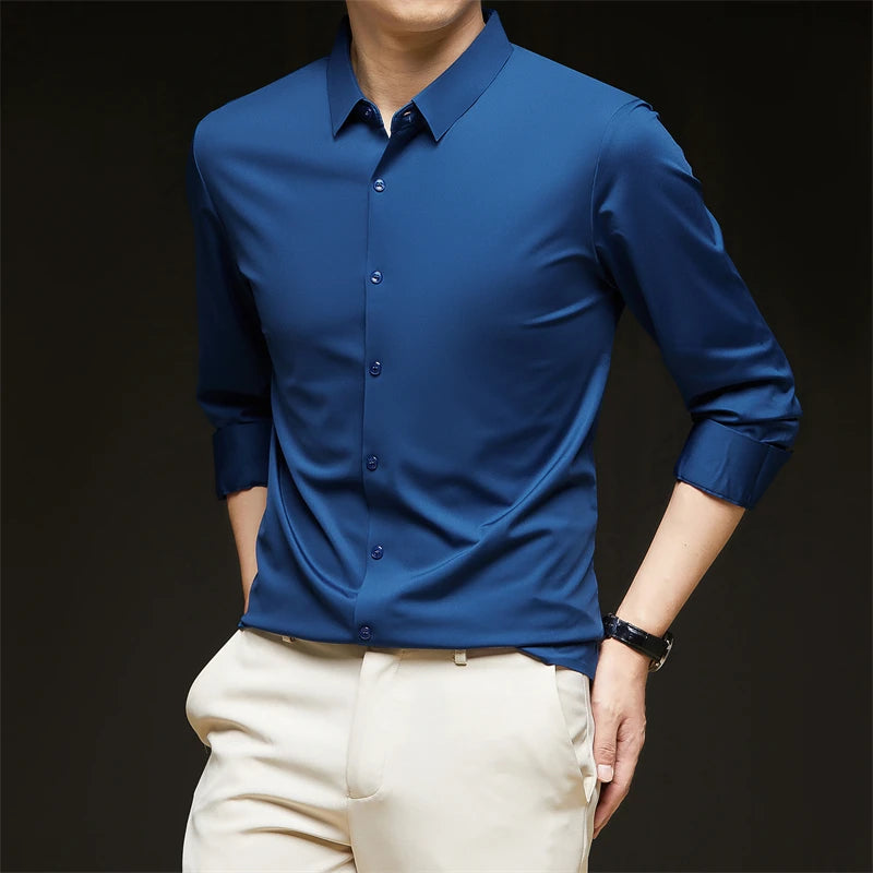 New Men's Business Casual Long Sleeved Solid Color Shirt Wrinkle Resistant Wrinkle Free Comfortable All Season Versatile Top