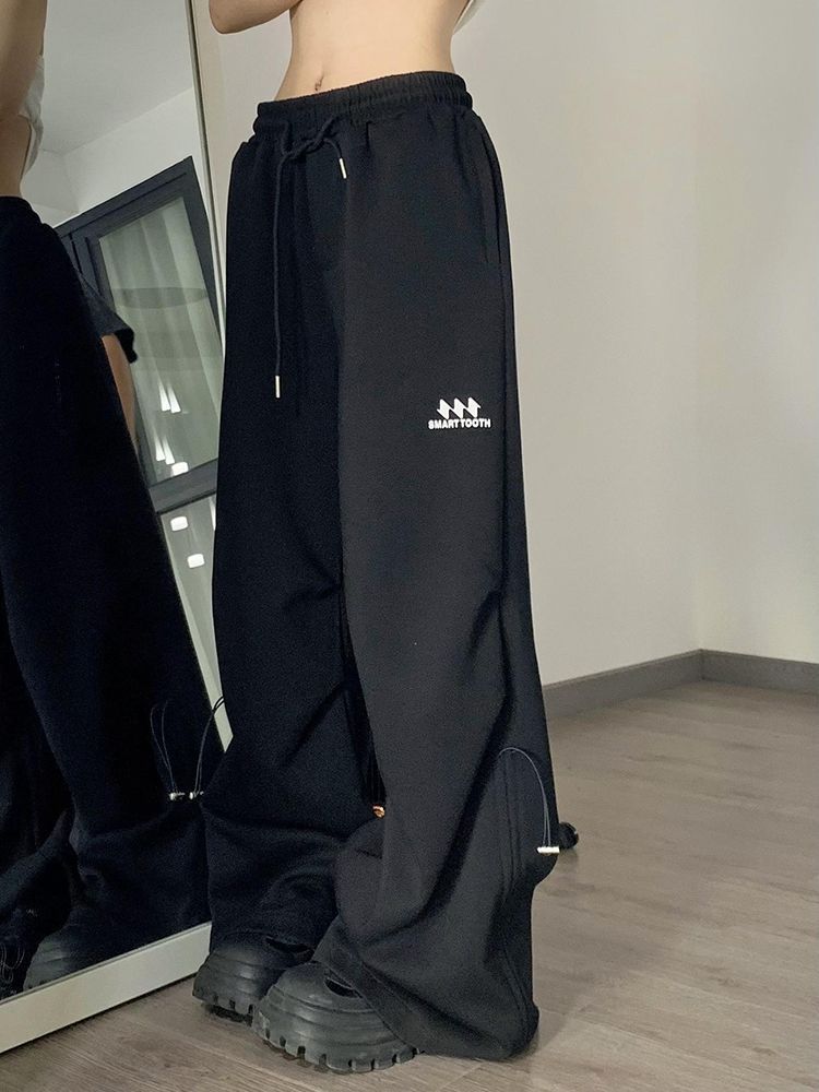 American Retro Wide Leg Drawstring Ruffle Design Sense High Street Casual Mopping Trousers