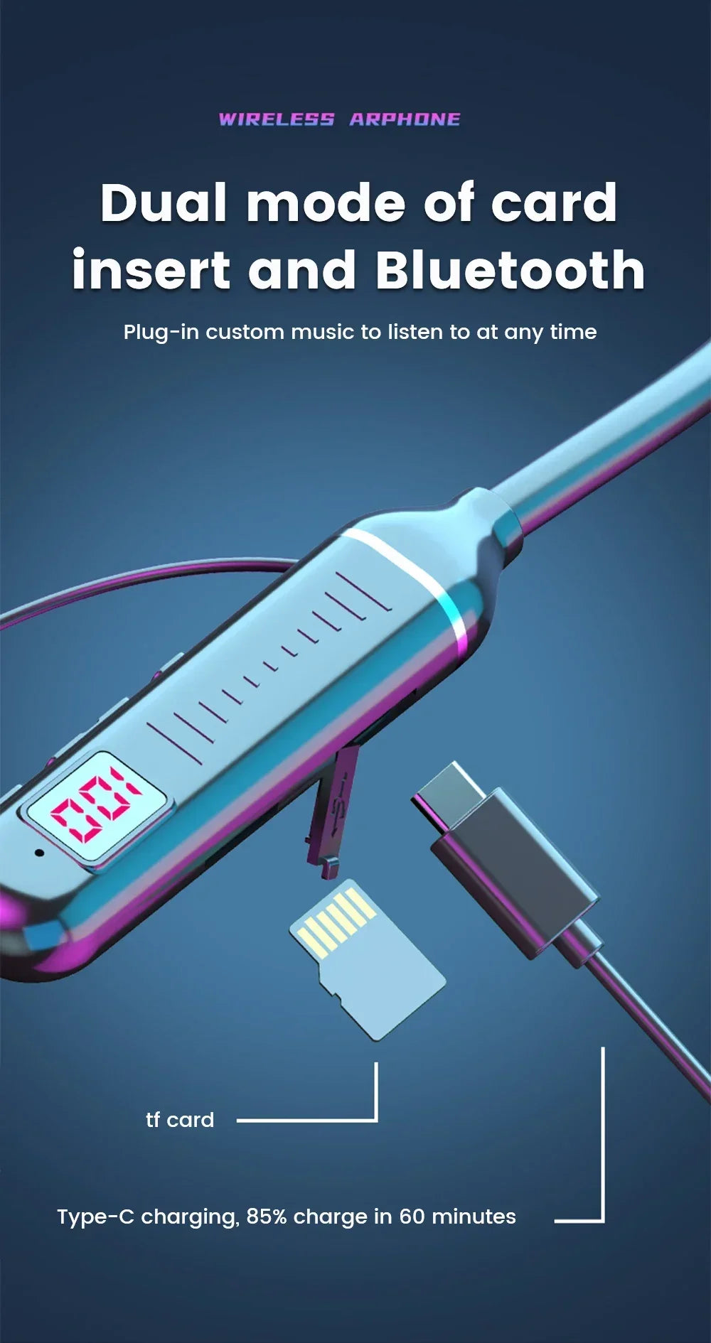 Bluetooth 5.2 Earphones Neckband Headphones TWS Wireless Headsets HiFi Stereo LED Digital Display Dual Mode Waterproof Earbuds