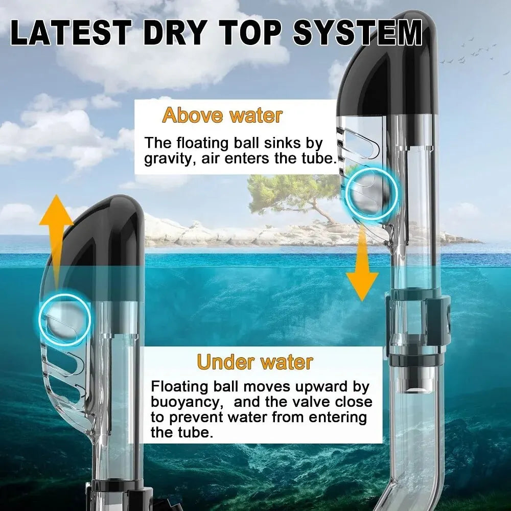 Diving Masks Foldable Anti-Fog Snorkel Mask Set with Full Dry Top System for Free Swim Professional Snorkeling Gear Adults Kids