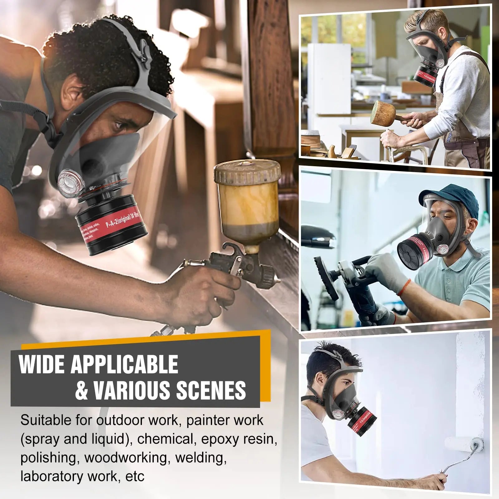 Full Face Gas Masks Survival Chemical Respirator with 40mm Filter, Full Face Respirator Gas Mask with 40mm Activated Carbon Filt